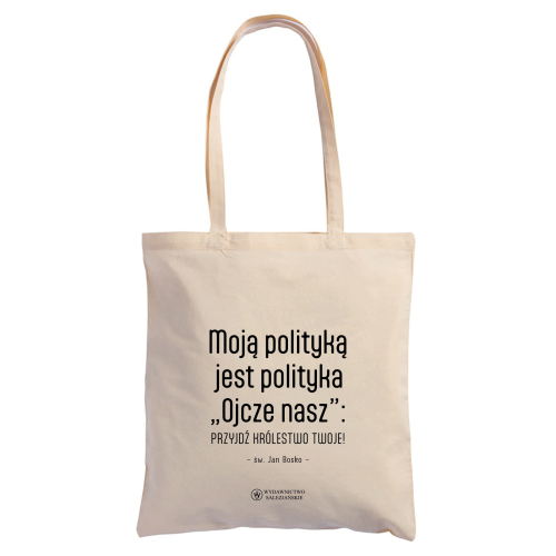 Moją polityką jest polityka "Ojcze nasz": przyjdź królestwo Twoje! - to słynne słowa wypowiedziane przez św. Jana Bosko do papieża bł. Piusa IX, które przypominamy na naturalnej bawełnianej torbie.