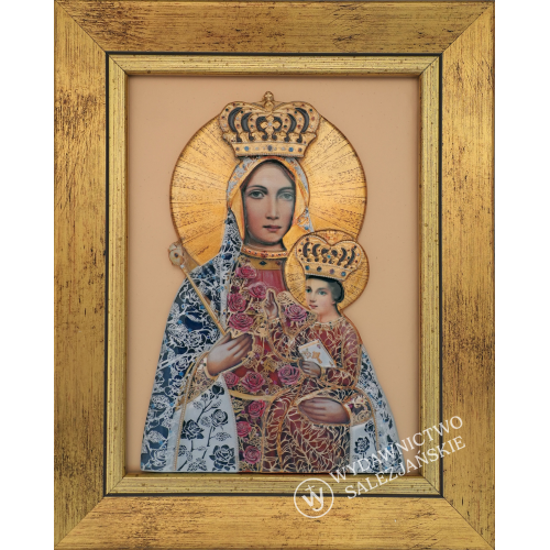 Obraz Matki Bożej Różanostockiej został wykonany w technologii ceramiki żywicznej z wysokiej jakości materiałów, łączy trwałość z pięknem. Ma wypukłą formę i daje efekt trójwymiarowości, który nadaje głębię. Został także uszlachetniony lakierem, co zapewnia wydobycie intensywnych kolorów i zwiększa trwałość obrazu.